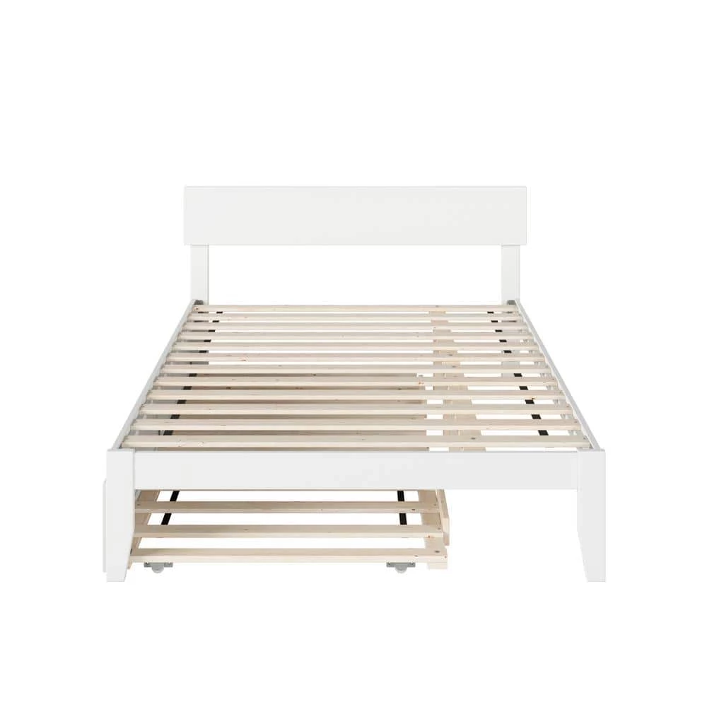 - Included Twin-sized trundle rolls easily on wheels and can be installed on either side of the bed