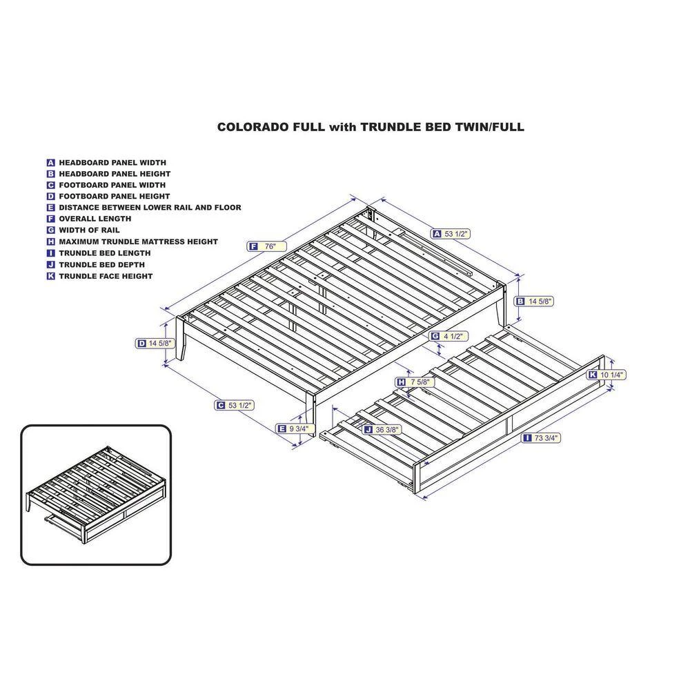 - Trundle accommodates up to a 6″ Twin-sized mattress
