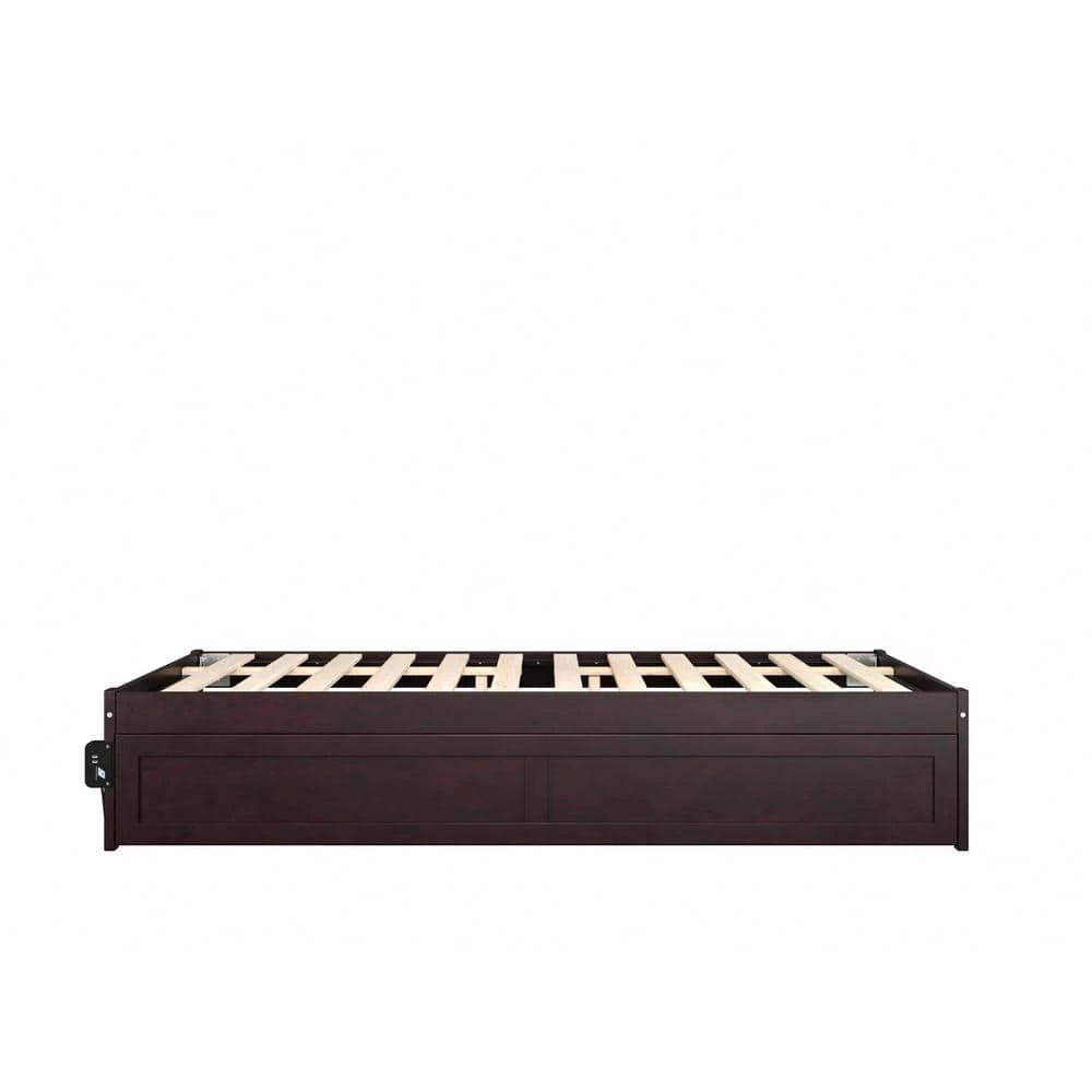 - Included Twin-sized trundle rolls easily on wheels and can be installed on either side of the bed