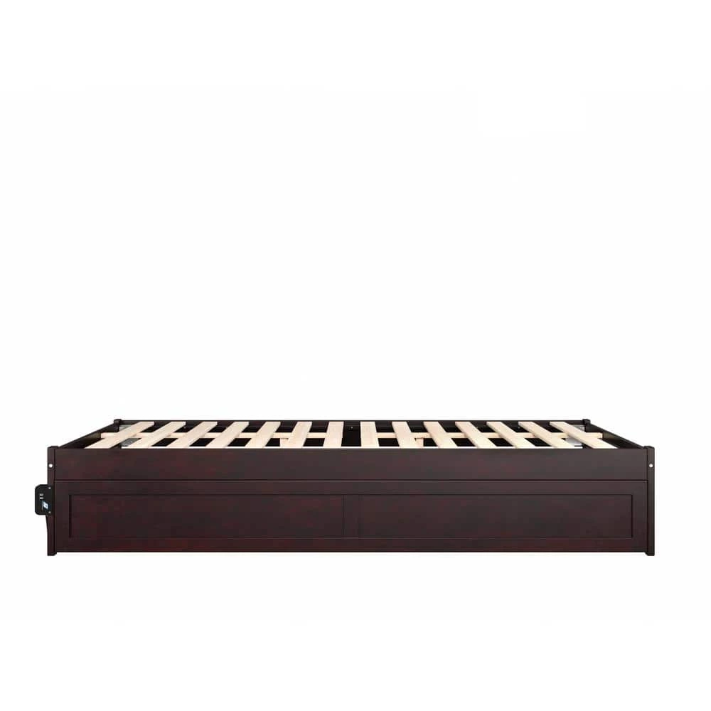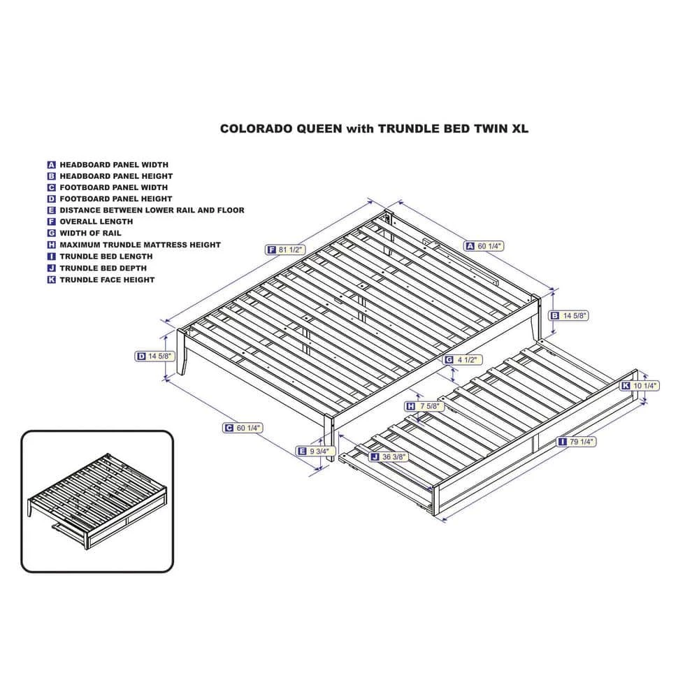 - Included Twin XL-sized trundle rolls easily on wheels and can be installed on either side of the bed