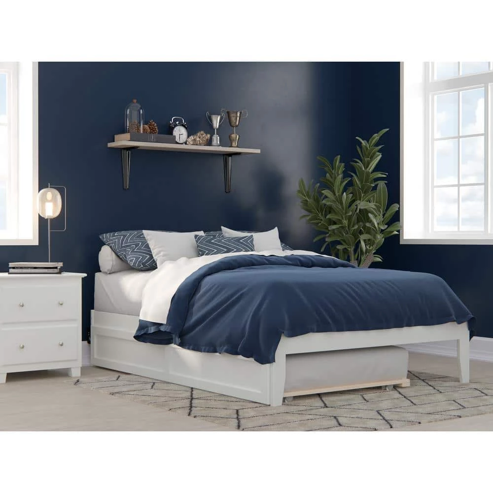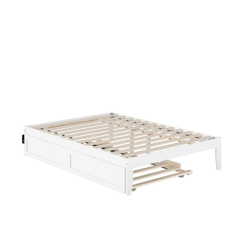 - Included Twin-sized trundle rolls easily on wheels and can be installed on either side of the bed