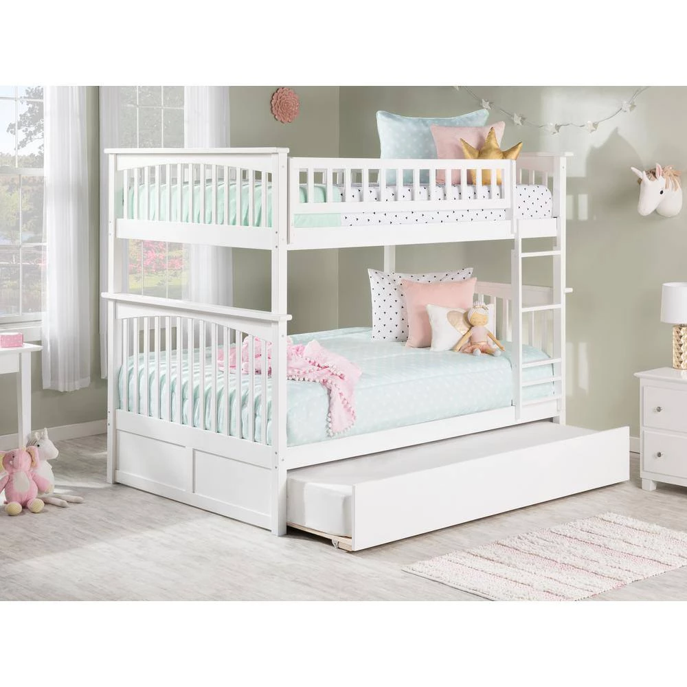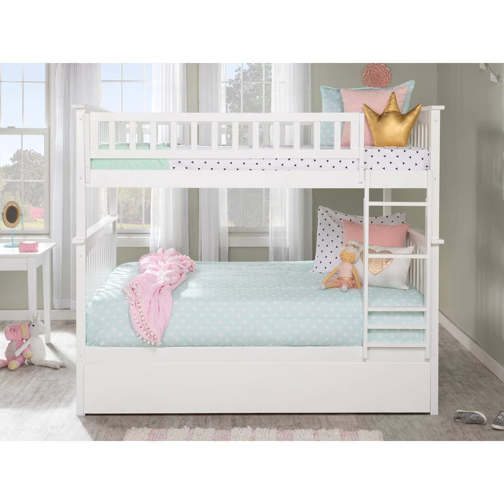Perfect for building a blanket fort, the Columbia bunk bed is a space saving design you and the kids will love. You can rest easy knowing it is a safe, quality product at a fantastic value. This bunk includes two slat kits that are mattress ready and eliminate the need for bunkie boards or foundations. Solid hard wood construction ensures this bunk will be in your home for years to come. Host your next sleepover in style. Attach the included surface mount turbo charger and keep all your electronics charged and ready to go!