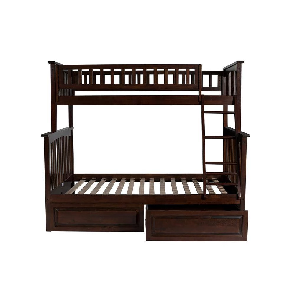 Constructed with solid eco-friendly hardwood in several durable, high-build finishes, the Columbia Bunk Bed can accommodate either under-bed storage drawers or a trundle. With 26 steel reinforcement points, two 14-piece slat kits, and a built-in modesty panel, this bed is as sturdy as they come. A space-saving design with so many sleep options, AFI’s Columbia Bunk Bed will become your child’s favorite sleepy time fort. Rest easy knowing you can trust this bed’s quality, safety, and value. Comes with one set of two underbed drawers. Still need more storage? These beds can accommodate up to four drawers with additional sets sold separately. Attach the included surface mount turbo charger and keep all your electronics charged and ready to go!