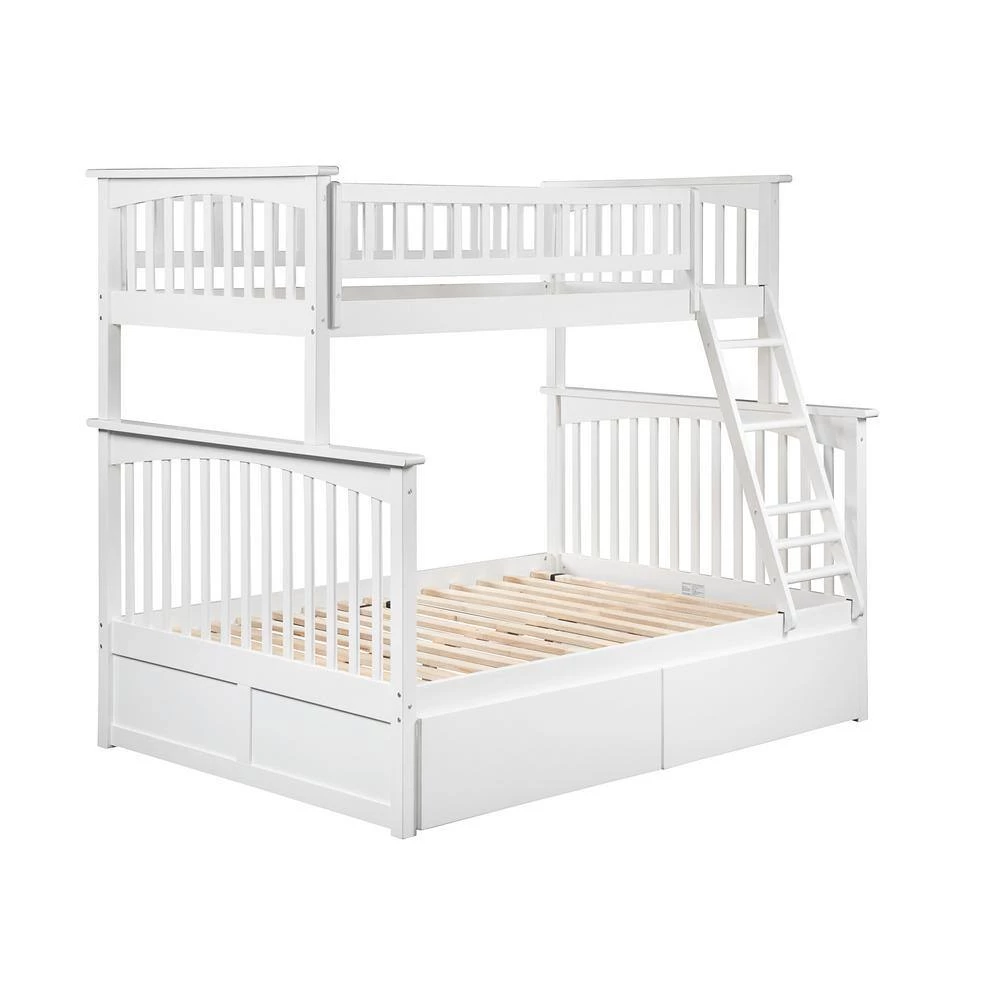 Constructed with solid eco-friendly hardwood in several durable, high-build finishes, the Columbia Bunk Bed can accommodate either under-bed storage drawers or a trundle. With 26 steel reinforcement points, two 14-piece slat kits, and a built-in modesty panel, this bed is as sturdy as they come. A space-saving design with so many sleep options, AFI’s Columbia Bunk Bed will become your child’s favorite sleepy time fort. Rest easy knowing you can trust this bed’s quality, safety, and value. Comes with one set of two underbed drawers. Still need more storage? These beds can accommodate up to four drawers with additional sets sold separately. Attach the included surface mount turbo charger and keep all your electronics charged and ready to go!