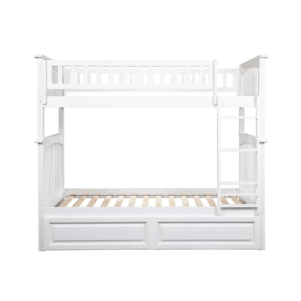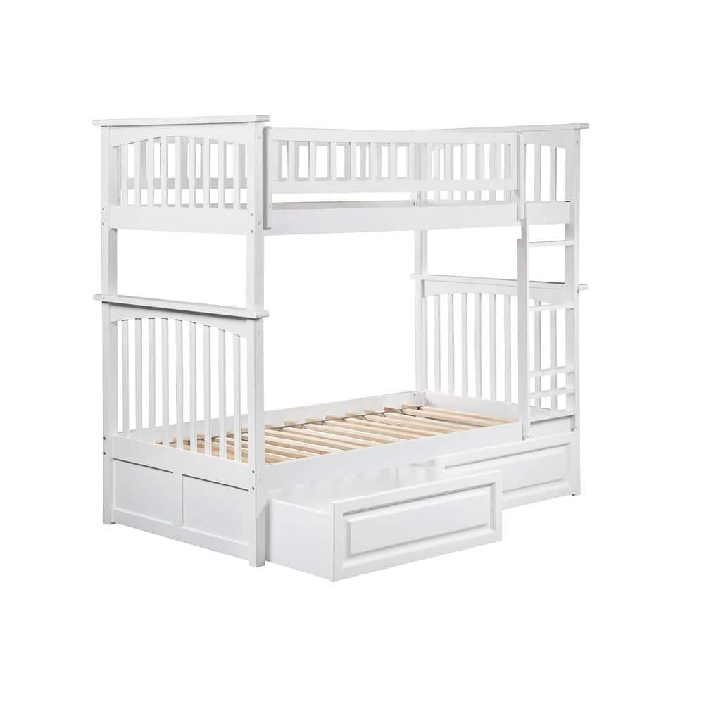 Constructed with solid eco-friendly hardwood in several durable, high-build finishes, the Columbia Bunk Bed can accommodate either under-bed storage drawers or a trundle. With 26 steel reinforcement points, two 14-piece slat kits, and a built-in modesty panel, this bed is as sturdy as they come. A space-saving design with so many sleep options, AFI’s Columbia Bunk Bed will become your child’s favorite sleepy time fort. Rest easy knowing you can trust this bed’s quality, safety, and value. Comes with one set of two underbed drawers. Still need more storage? These beds can accommodate up to four drawers with additional sets sold separately. Attach the included surface mount turbo charger and keep all your electronics charged and ready to go!