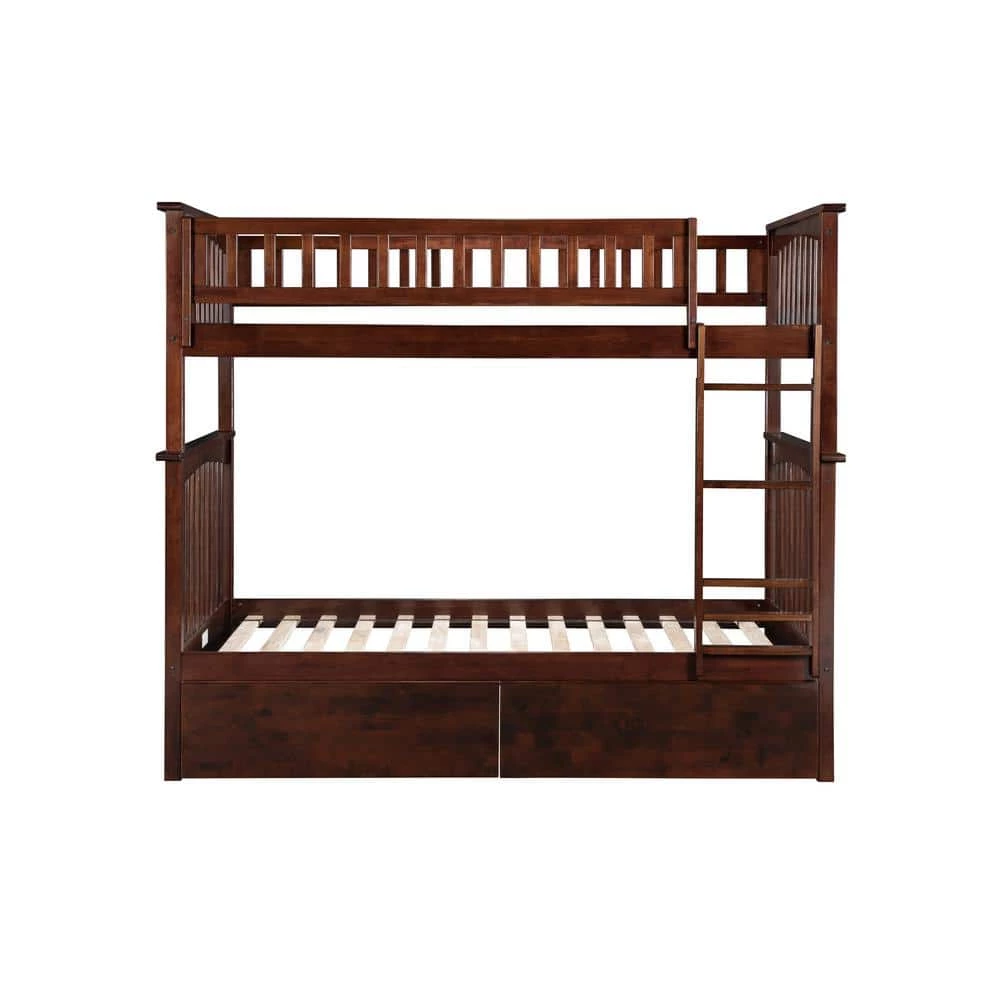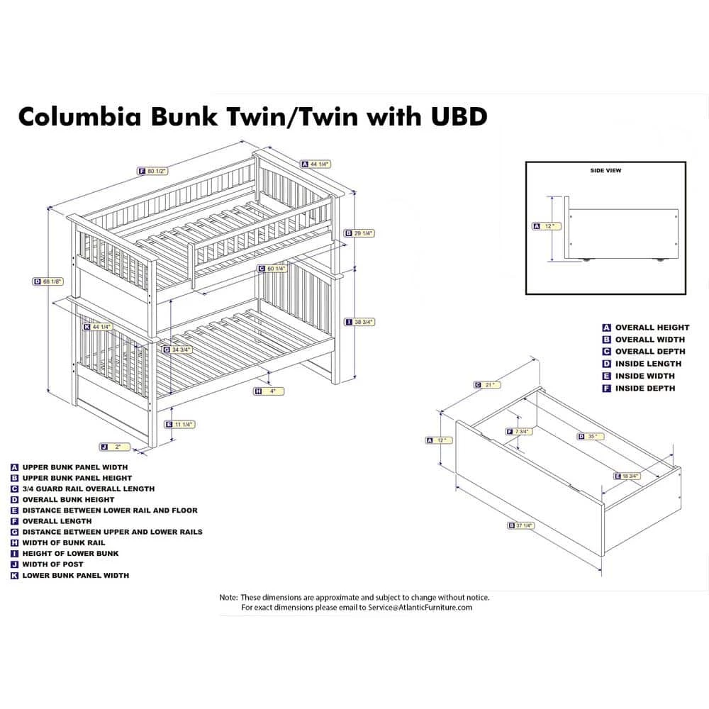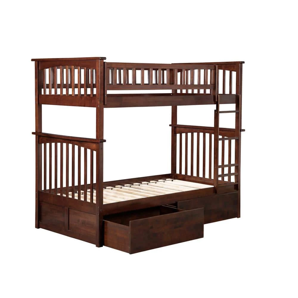 Constructed with solid eco-friendly hardwood in several durable, high-build finishes, the Columbia Bunk Bed can accommodate either under-bed storage drawers or a trundle. With 26 steel reinforcement points, two 14-piece slat kits, and a built-in modesty panel, this bed is as sturdy as they come. A space-saving design with so many sleep options, AFI’s Columbia Bunk Bed will become your child’s favorite sleepy time fort. Rest easy knowing you can trust this bed’s quality, safety, and value. Comes with one set of two underbed drawers. Still need more storage? These beds can accommodate up to four drawers with additional sets sold separately. Attach the included surface mount turbo charger and keep all your electronics charged and ready to go!