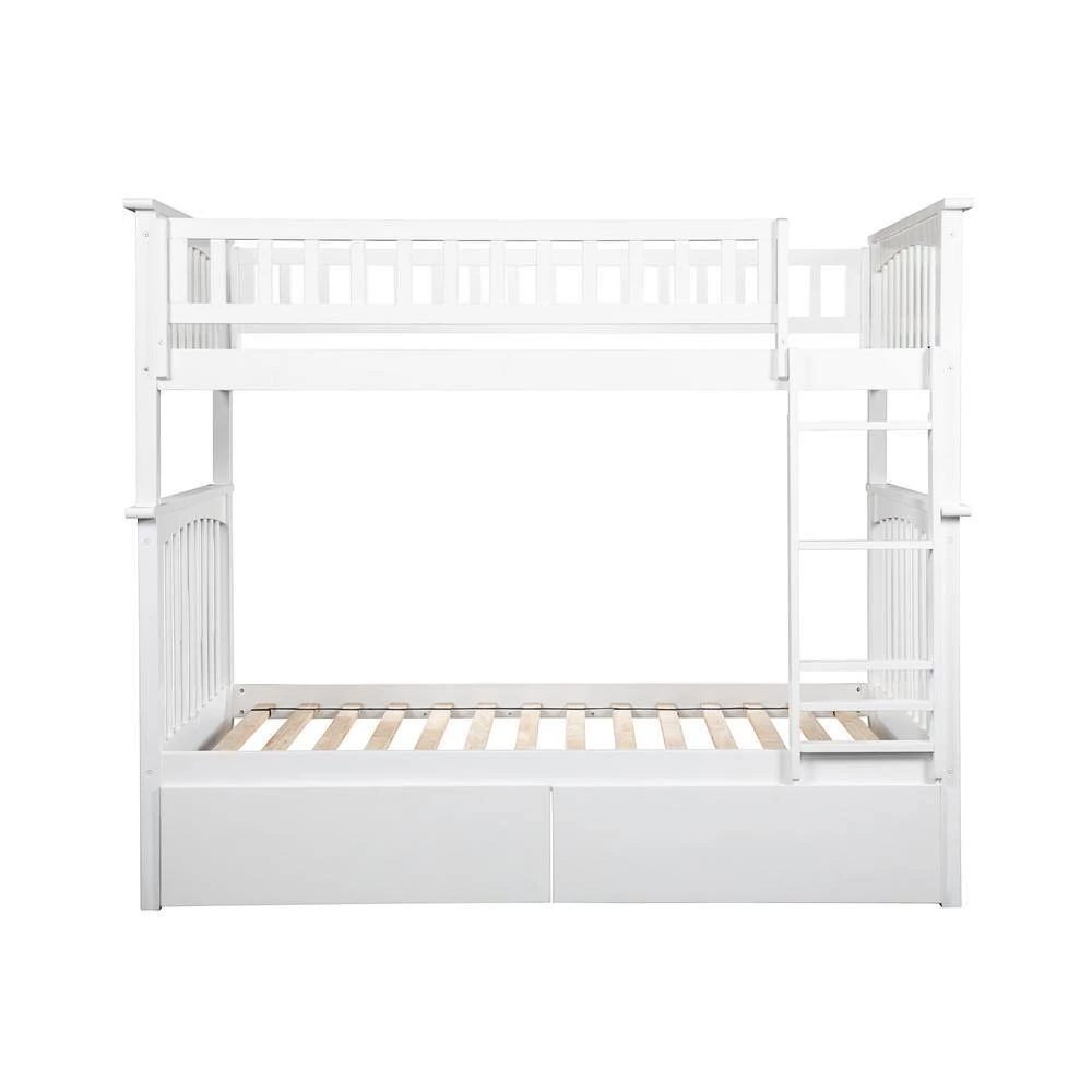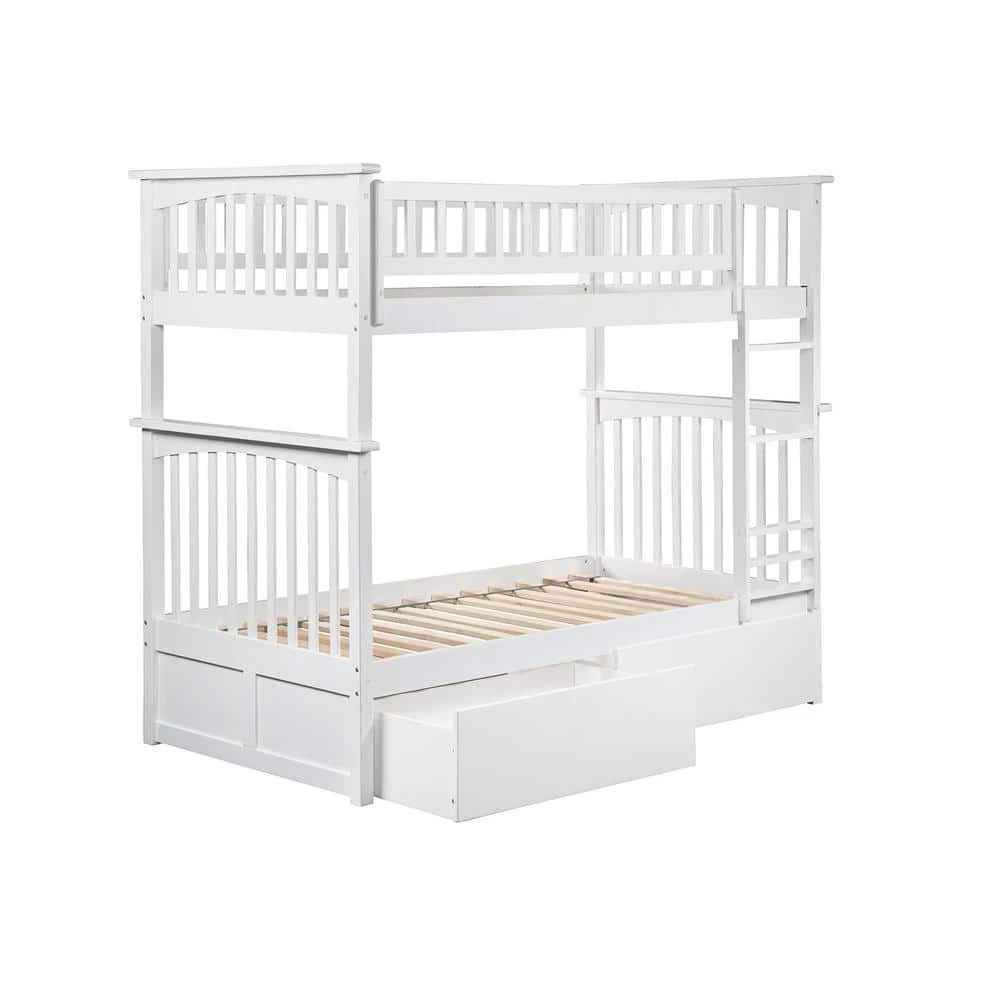 Constructed with solid eco-friendly hardwood in several durable, high-build finishes, the Columbia Bunk Bed can accommodate either under-bed storage drawers or a trundle. With 26 steel reinforcement points, two 14-piece slat kits, and a built-in modesty panel, this bed is as sturdy as they come. A space-saving design with so many sleep options, AFI’s Columbia Bunk Bed will become your child’s favorite sleepy time fort. Rest easy knowing you can trust this bed’s quality, safety, and value. Comes with one set of two underbed drawers. Still need more storage? These beds can accommodate up to four drawers with additional sets sold separately. Attach the included surface mount turbo charger and keep all your electronics charged and ready to go!