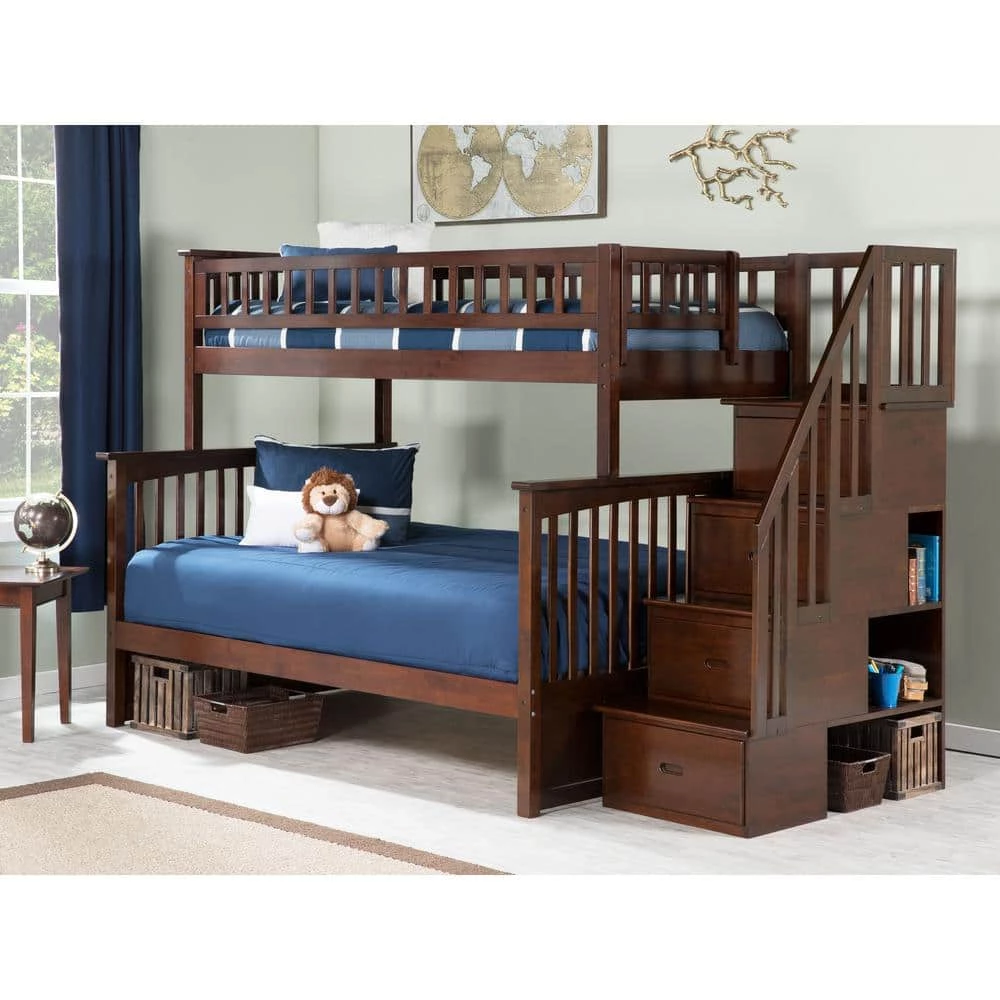 - Includes assembled staircase, Staircase can be set up at either end of the bunk bed