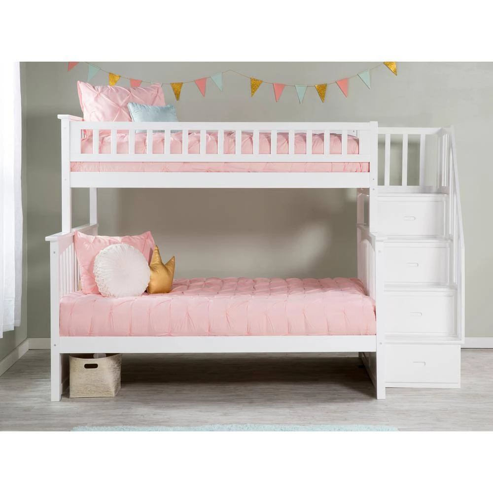 - Includes assembled staircase; Staircase can be set up at either end of the bunk bed