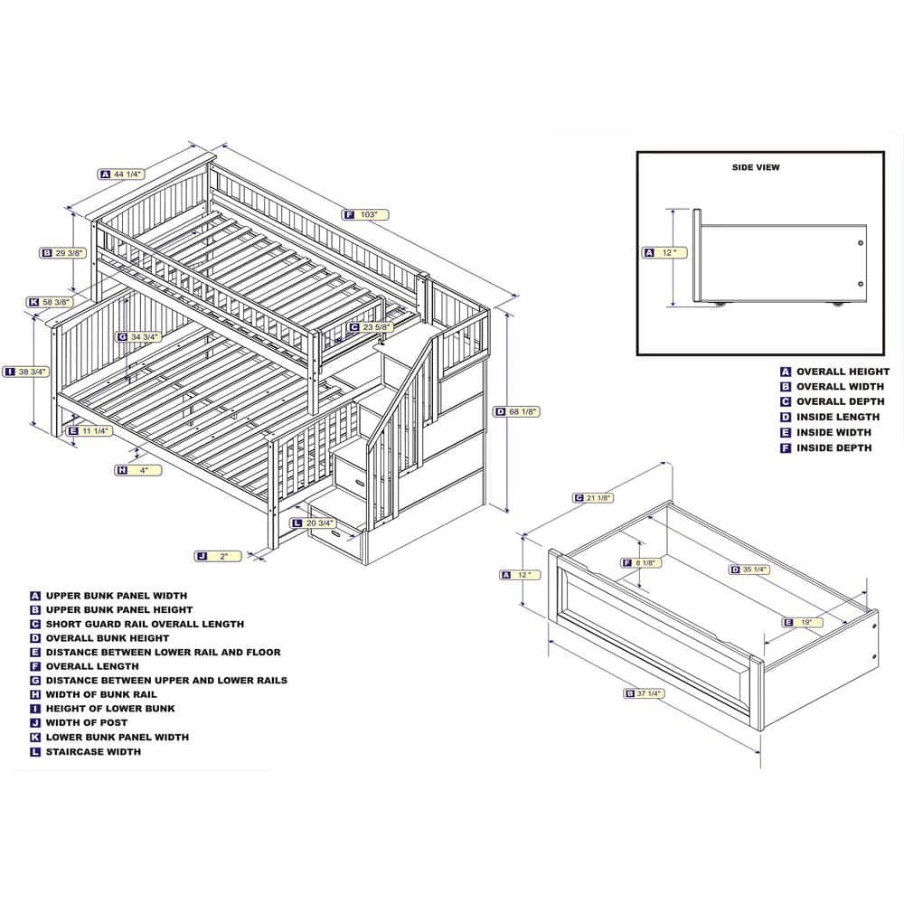 - Includes assembled staircase, Staircase can be set up at either end of the bunk bed