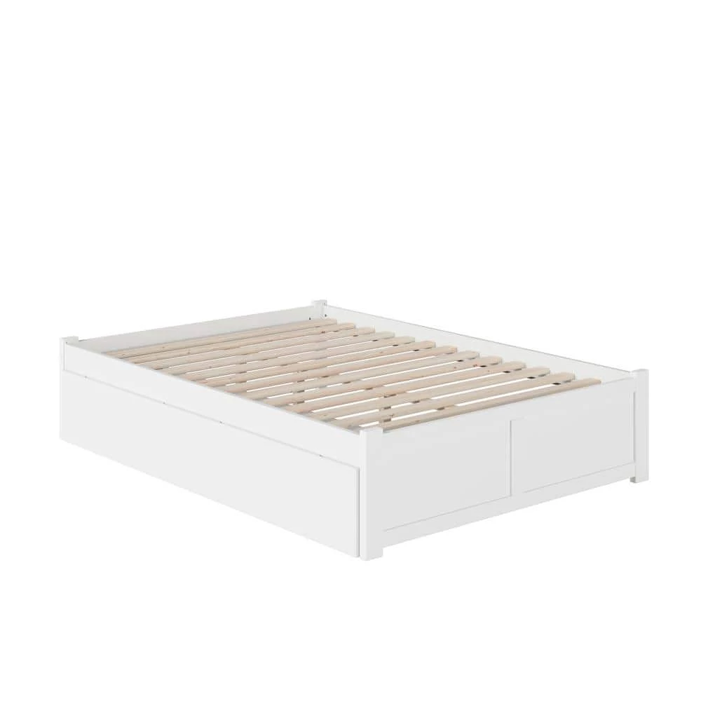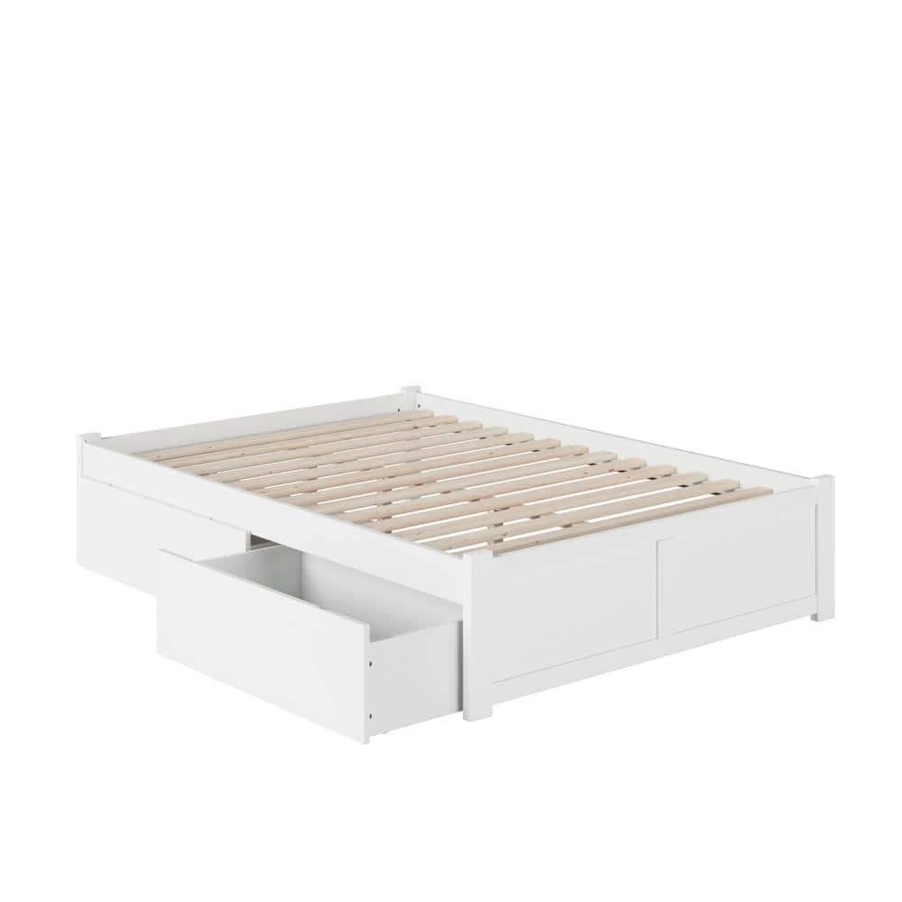- Includes two large drawers for ample underbed storage that slides easily on wheels and can be placed on either side of the bed