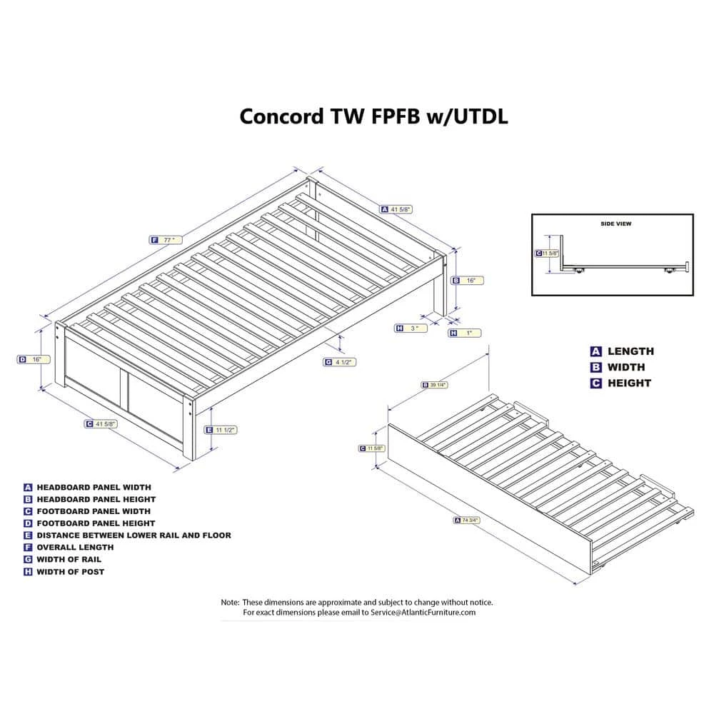 - Twin Size Concord Bed with Roll Out Trundle Bed for Sleepovers, Day Beds, and space saving design.