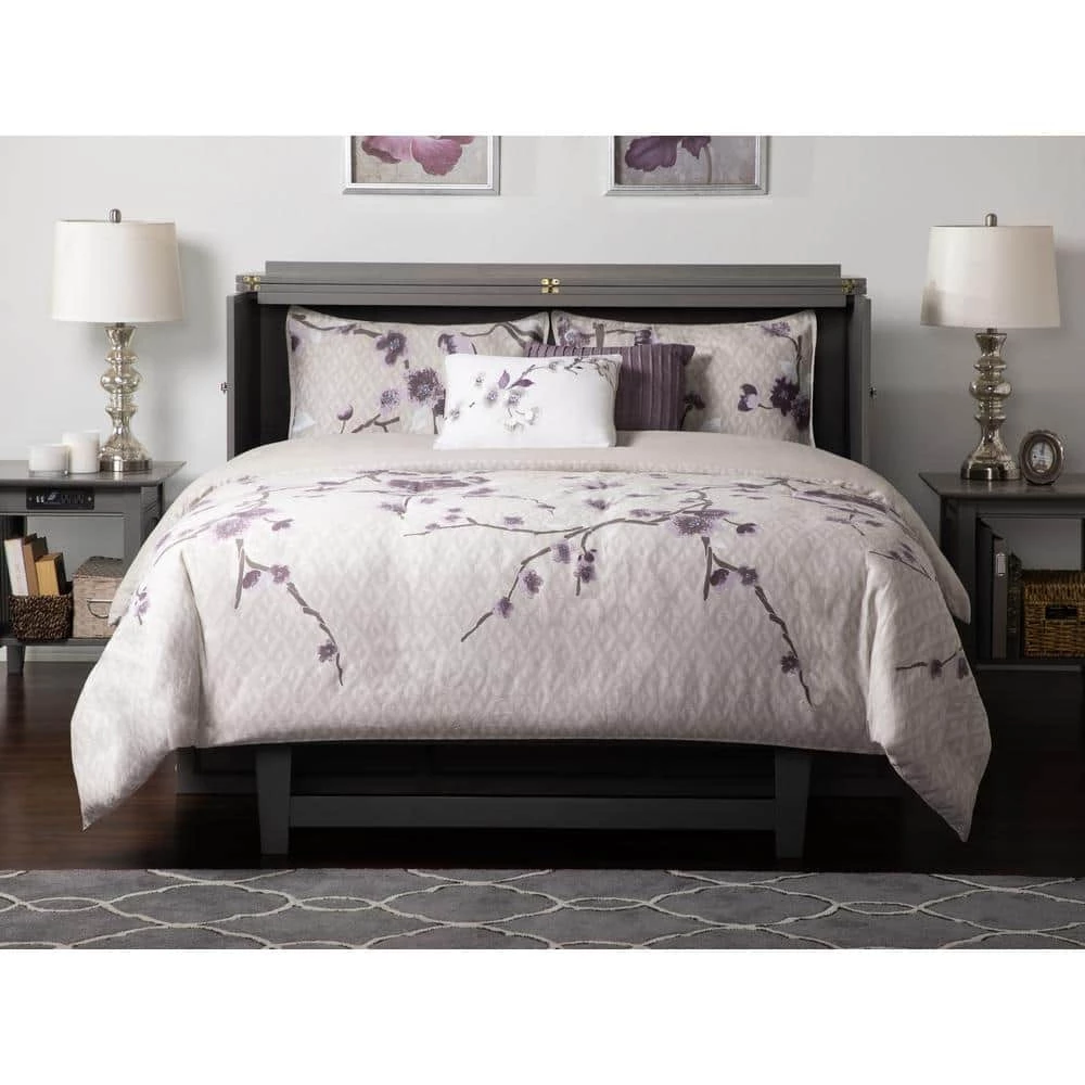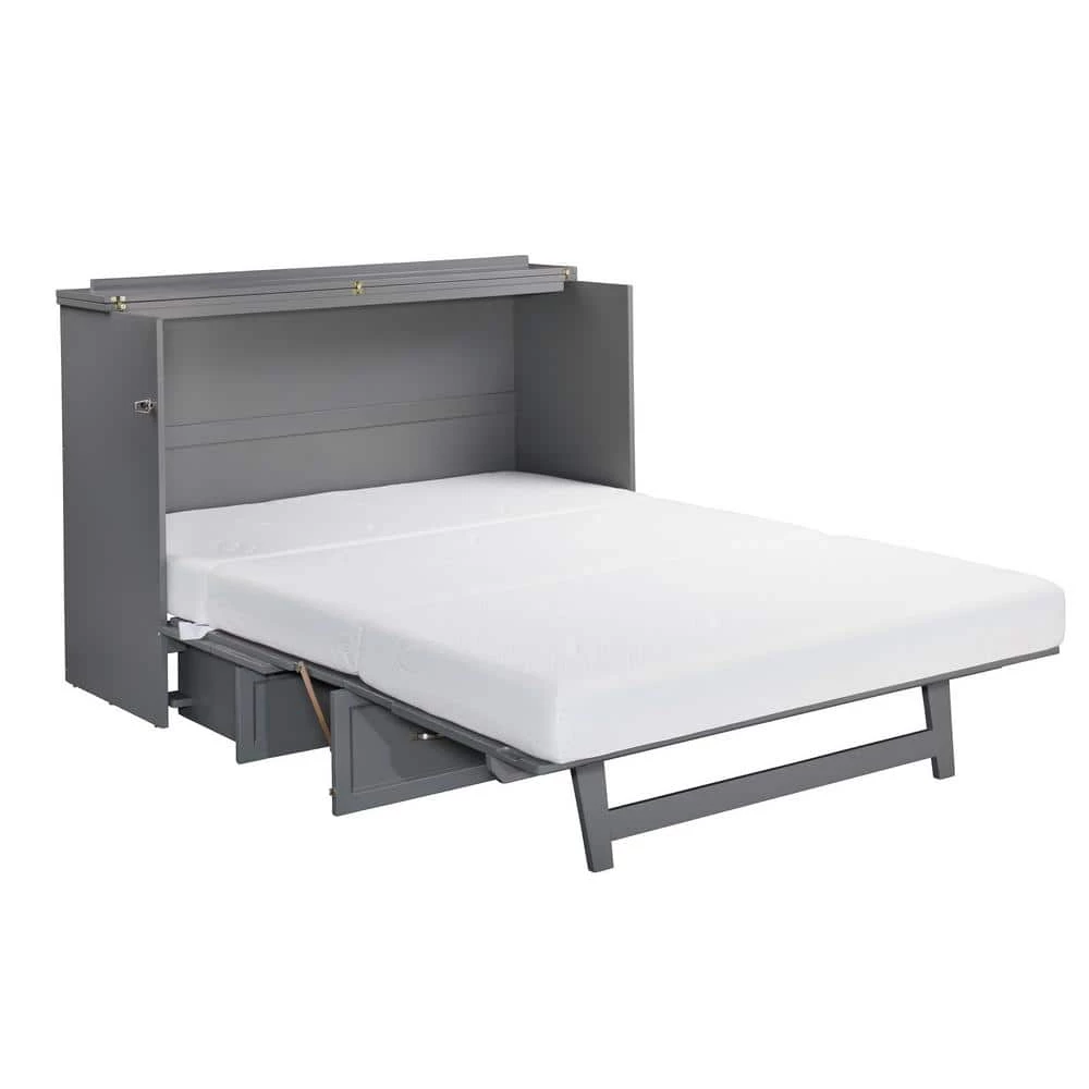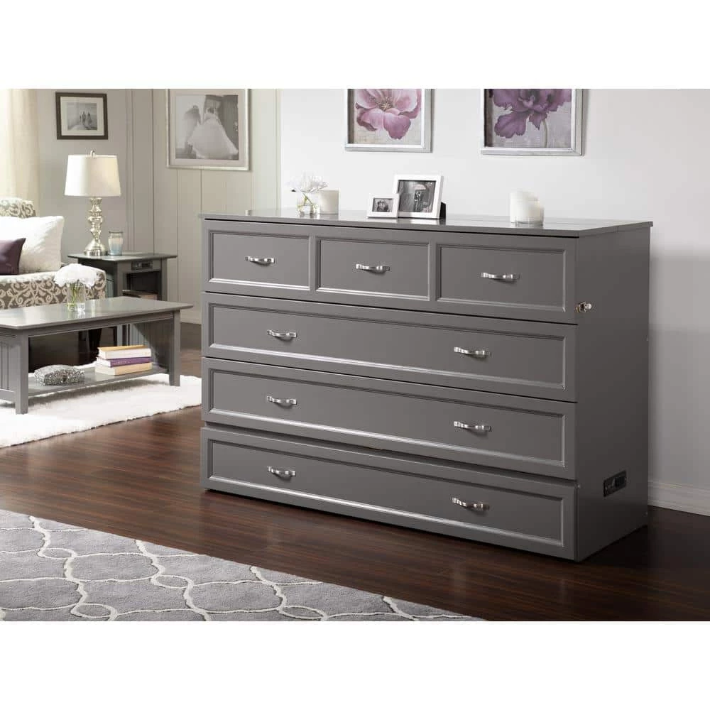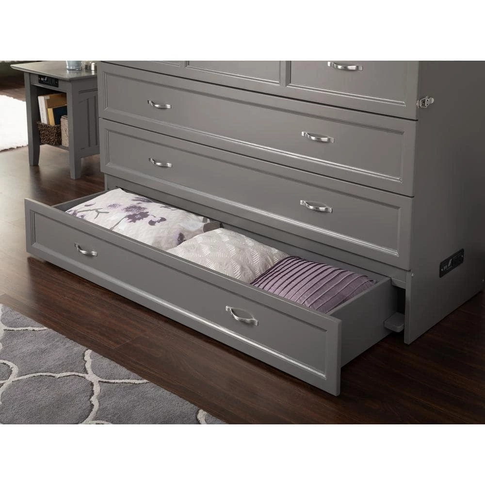 Deerfield Murphy Bed Chest Queen Atlantic Grey with Charging Station by AFI
