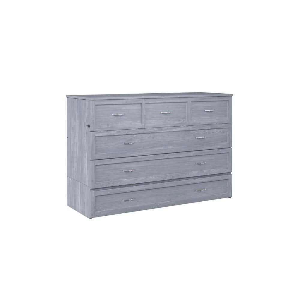You don’t have to sacrifice space nor style with the purchase of a Murphy Bed Chest. Complete with a fold-out queen mattress, the Deerfield Murphy Bed chest is the perfect combination of comfort and convenience; when tucked away, the bed appears as an elegant chest of drawers. When it’s time for bed, simply unlatch the doors and lower the mattress supports. With the additional bonus of a built-in charging station, you can keep a cellphone charger or alarm clock close by.