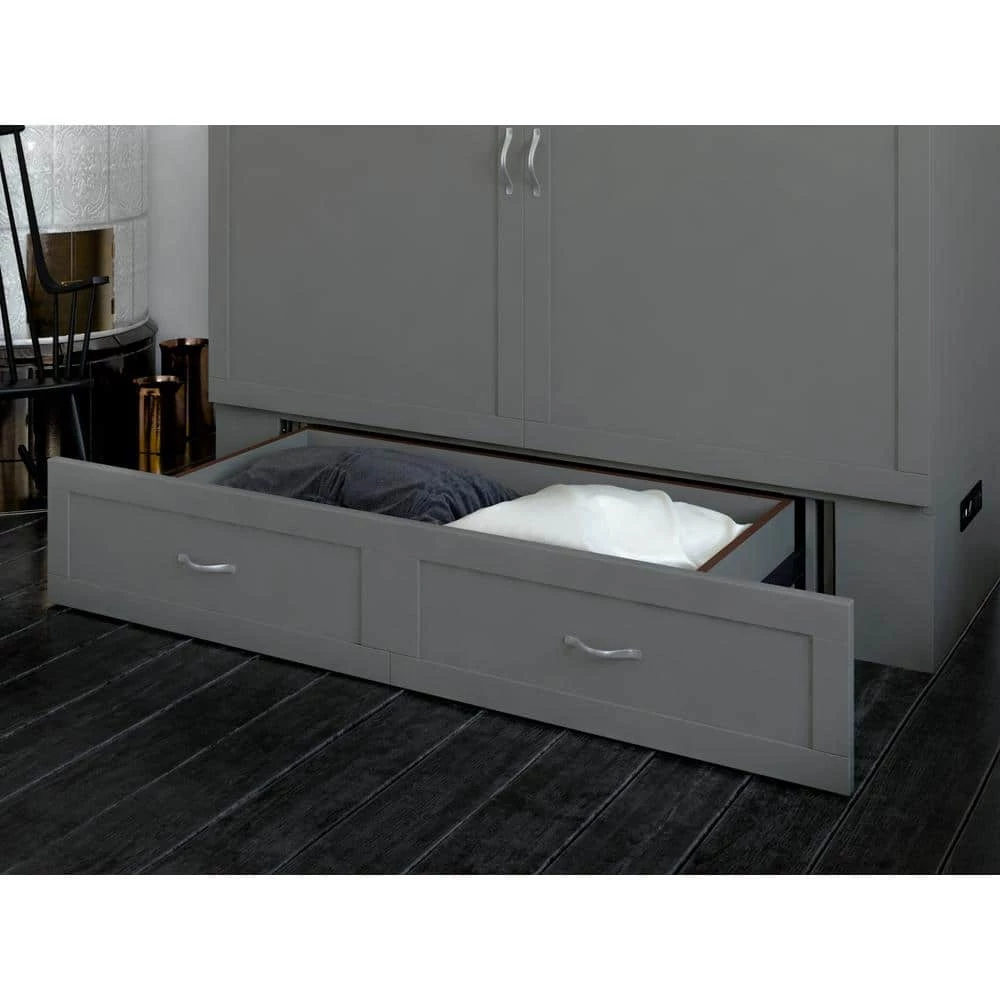 A traditional piece with contemporary convenience, the Hamilton Murphy Bed Chest will have your guests awed. This classic, unassuming chest can transform into a queen-sized bed in minutes. Just unlatch and fold down the front cabinets, unfurl the folding memory foam mattress inside and voila, Closing up is just as simple. Say goodbye to your days of wrestling with a fold-out couches and deflating air mattresses. Hosting overnight guests doesn’t have to be hard with a Murphy Bed Chest.