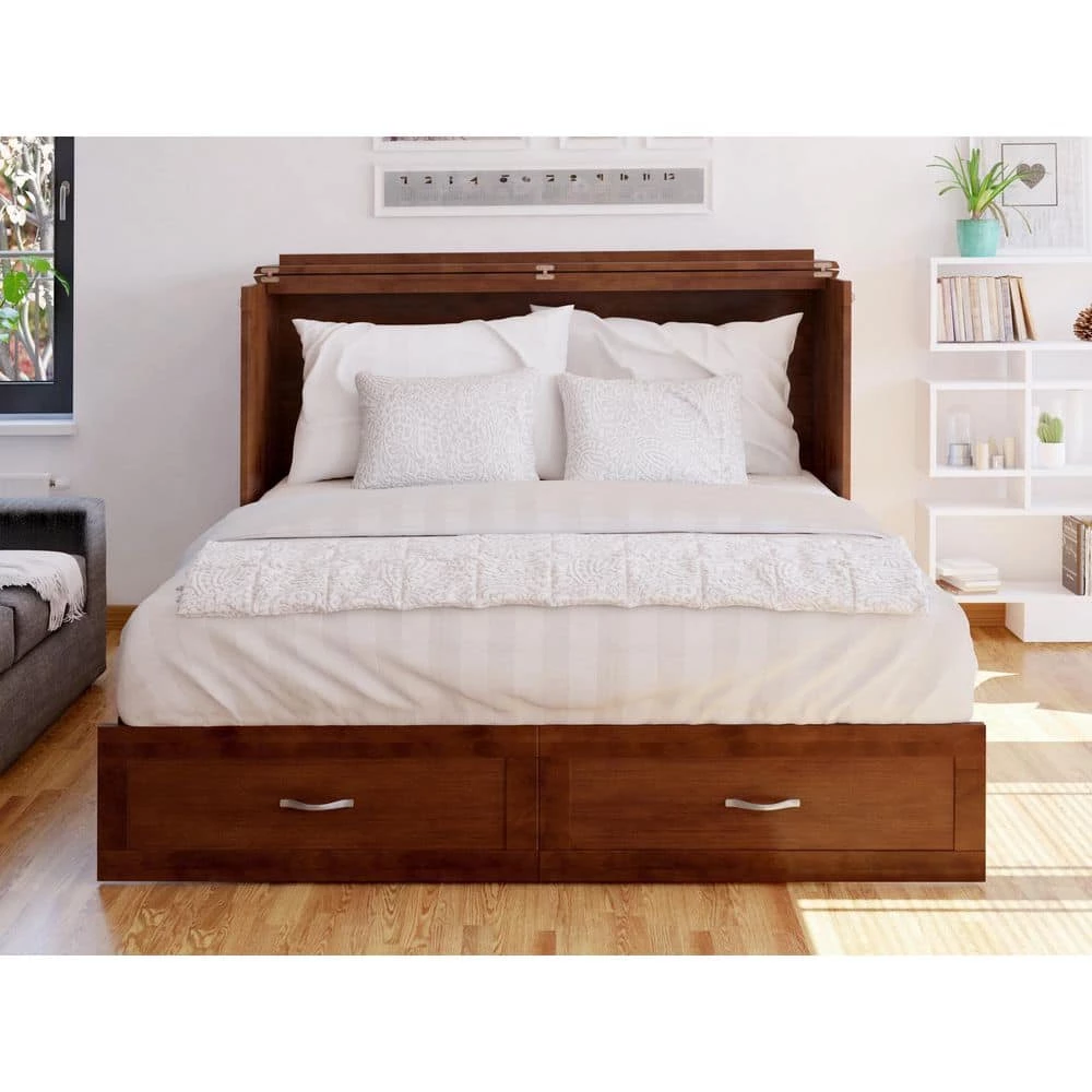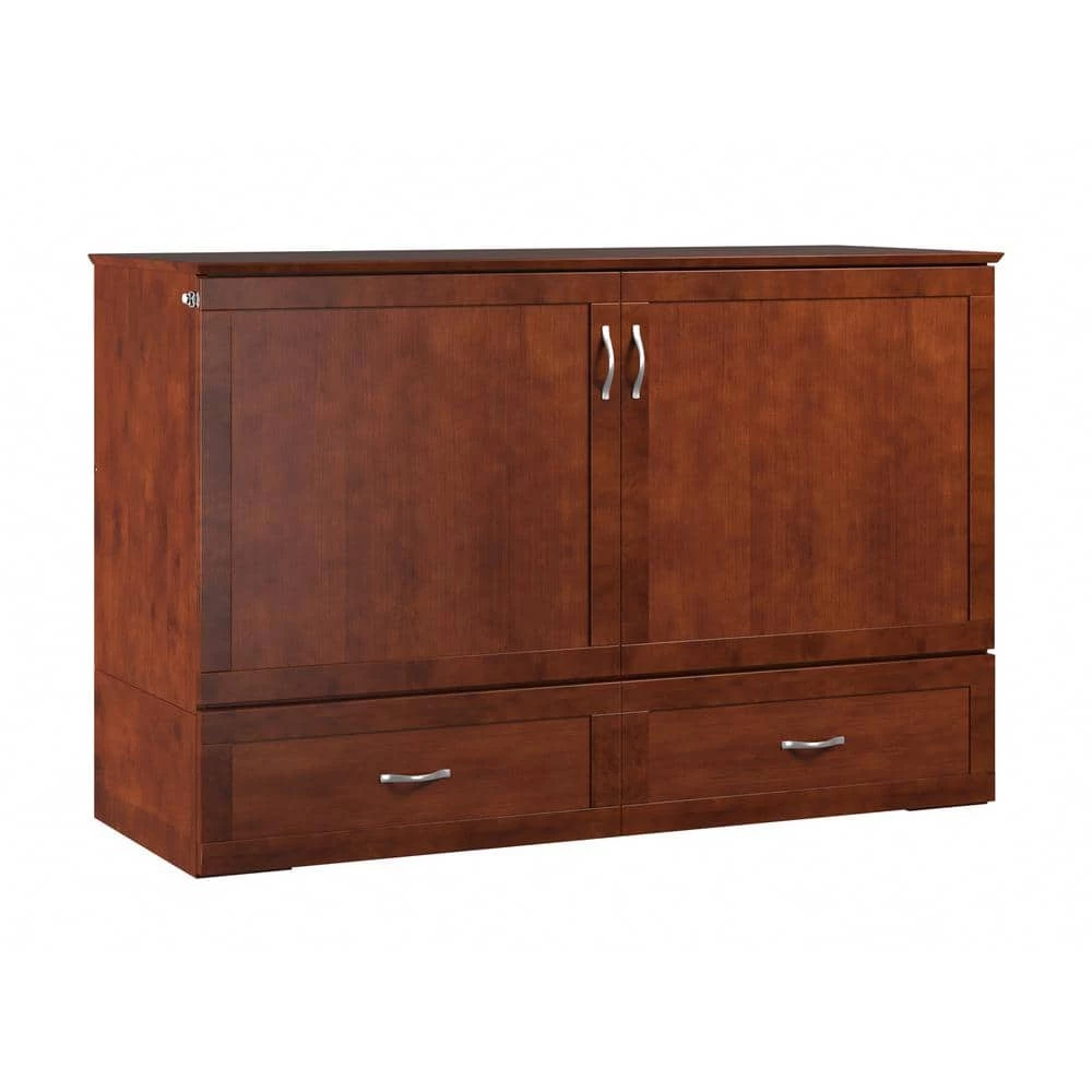 A traditional piece with contemporary convenience, the Hamilton Murphy Bed Chest will have your guests awed. This classic, unassuming chest can transform into a queen-sized bed in minutes. Just unlatch and fold down the front cabinets, unfurl the folding memory foam mattress inside and voila, Closing up is just as simple. Say goodbye to your days of wrestling with a fold-out couches and deflating air mattresses. Hosting overnight guests doesn’t have to be hard with a Murphy Bed Chest.