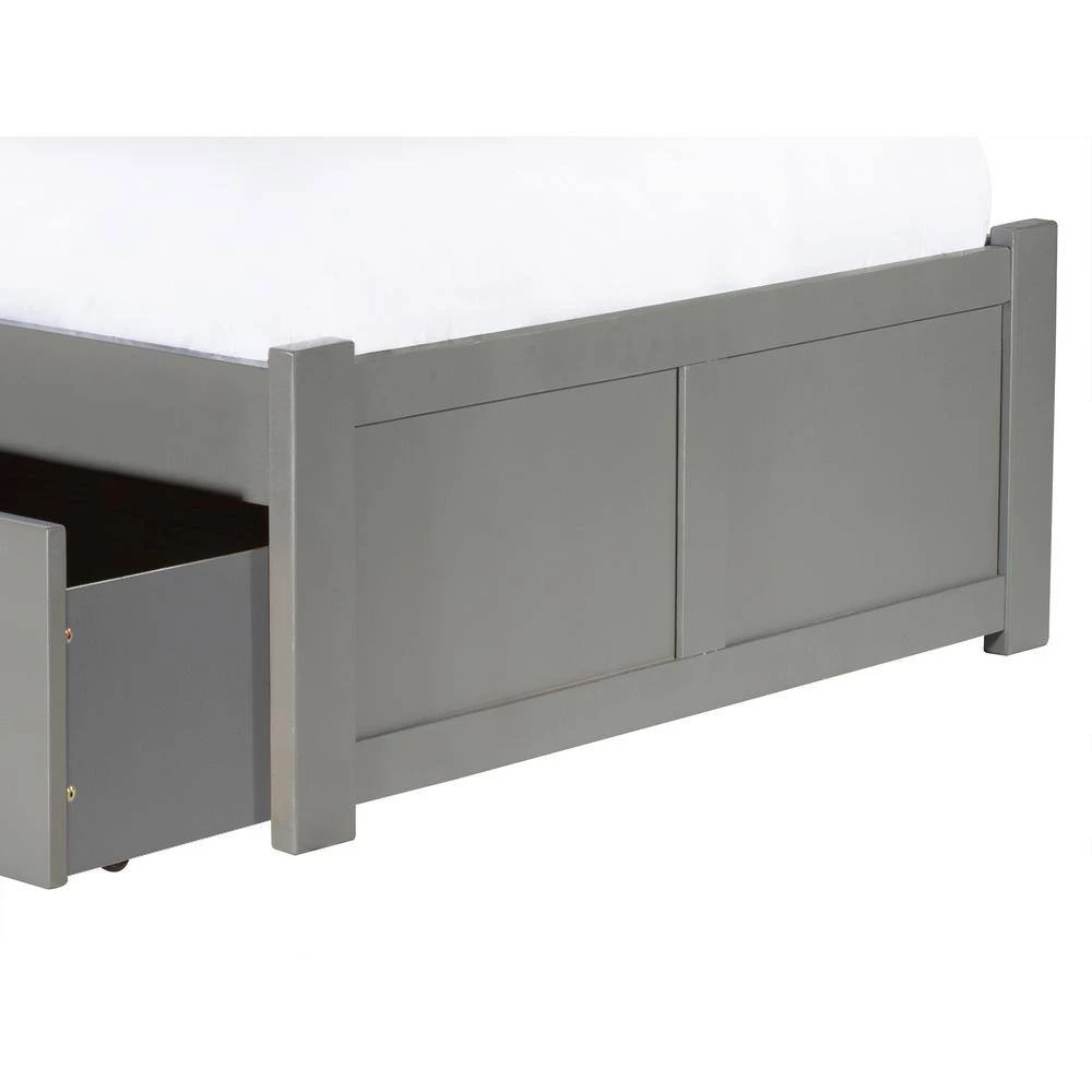 - Includes two large drawers for ample underbed storage that slides easily on wheels and can be placed on either side of the bed