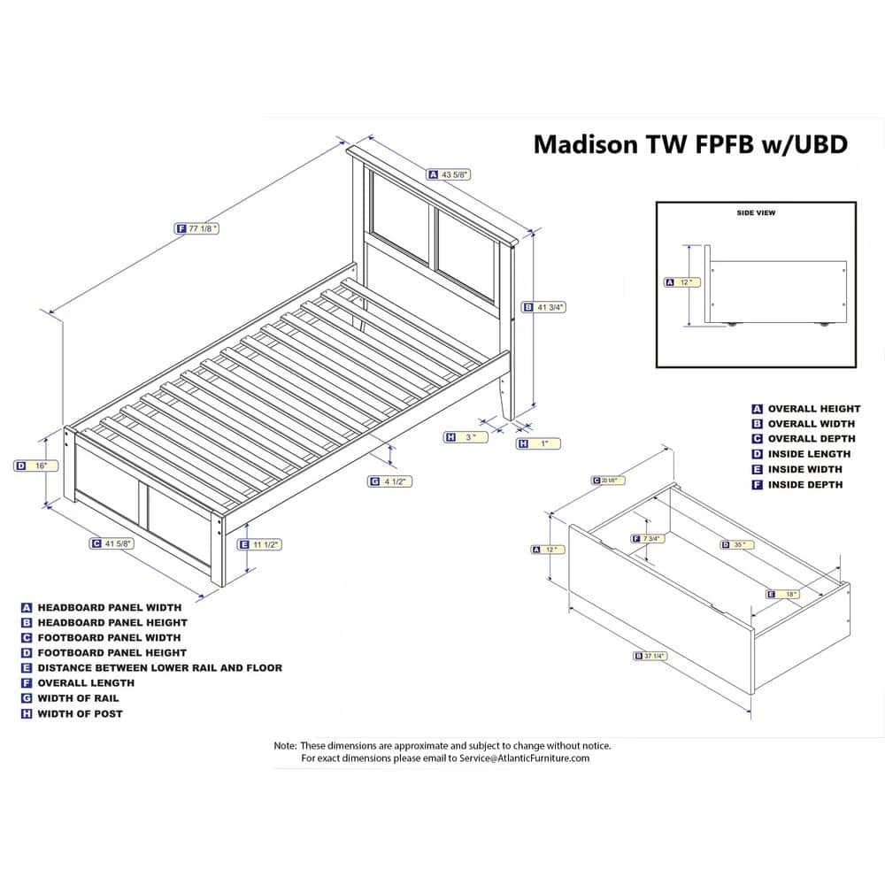 Clean lines and a traditional look make the Madison Bed a sophisticated addition to any room, seamlessly incorporating storage space without sacrificing style. Each bed comes with one set of two underbed drawers. Still need more storage? These beds can accommodate up to four drawers with additional sets sold separately. Attach the included surface mount turbo charger and keep all your electronics charged and ready to go!