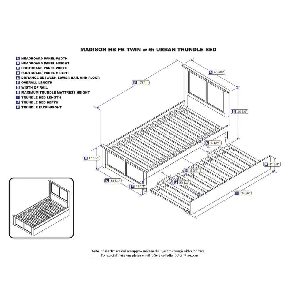 - Sliding 8″ twin size trundle to accommodate guests