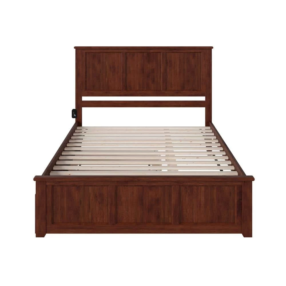 The Madison Platform Bed with Matching Footboard adds a traditional touch to your sleeping space. Clean lines create a classic look that carries this design from generation to generation. Tucked under the bed is a twin extra long size trundle that can roll out from either side of the frame for extra sleeping space. The strong, supportive slat kit makes this bed mattress ready- no foundation necessary. Putting together your dream retreat just got easier, thanks to the simple elegance of our Madison beds. Attach the included surface mount turbo charger and keep all your electronics charged and ready to go.