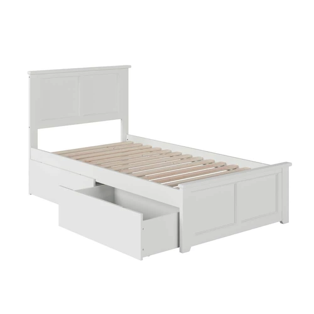 - Includes two large drawers for ample underbed storage that slides easily on wheels and can be placed on either side of the bed