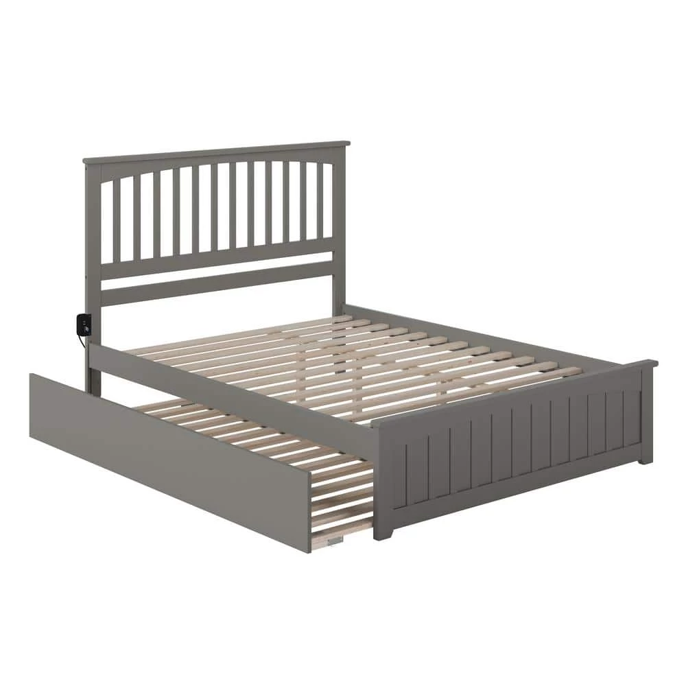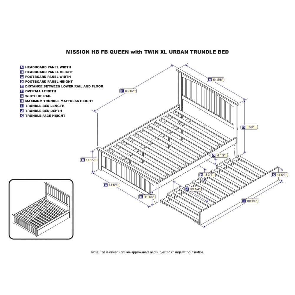 Featuring an elegant, slatted headboard and footboard, the Mission Platform Bed adds a traditional touch to your sleeping space. Tucked under the bed is a twin extra long size trundle that can roll out from either side of the frame for extra sleeping space. The strong, supportive slat kit makes this bed mattress ready- no foundation necessary. Designing your dream retreat just got easier, thanks to the simple elegance of our Mission beds. Attach the included surface mount turbo charger and keep all your electronics charged and ready to go.