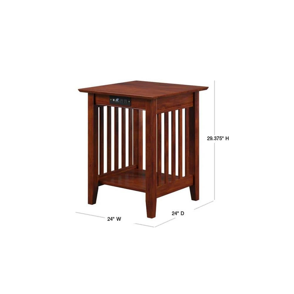 Complete your work space with an AFI Mission Printer Stand. Slatted side panels makes this design fresh, simple, and stylish. As durable as they are chic, this desk is manufactured using sustainably sourced solid hardwood. The height and depth are matched exactly to AFI desks, meaning they’re the perfect addition to any home office! This desk also includes a built-in charging station for all of your favorite devices!