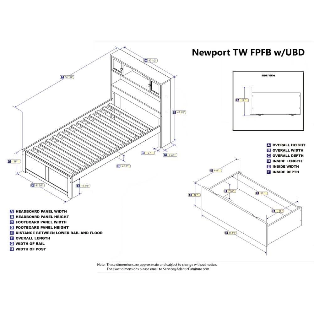 Have your pick of storage options with the Newport Bookcase Bed. The headboard comes equipped with two shelves and dual raised panel cabinets with easy-to-close metal hinges while under-bed storage drawers provide extra space. Each bed comes with one set of two underbed drawers. Still need more storage? These beds can accommodate up to four drawers with additional sets sold separately. Attach the included surface mount turbo charger and keep all your electronics charged and ready to go!