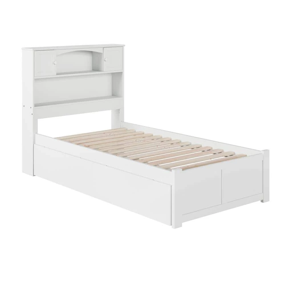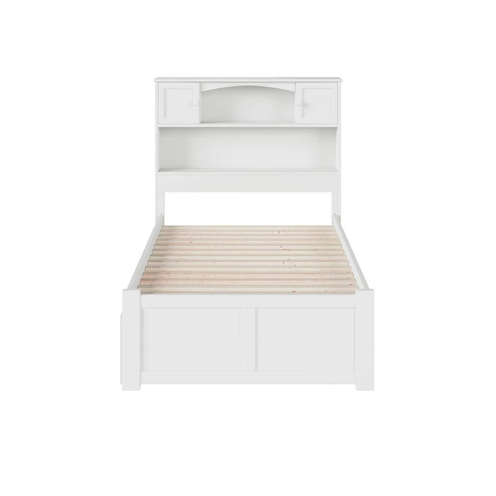 Have your pick of storage options with the Newport Bookcase Bed. The headboard comes equipped with two shelves and dual raised panel cabinets with easy-to-close metal hinges while under-bed storage drawers provide extra space. Each bed comes with one set of two underbed drawers. Still need more storage? These beds can accommodate up to four drawers with additional sets sold separately. Attach the included surface mount turbo charger and keep all your electronics charged and ready to go!