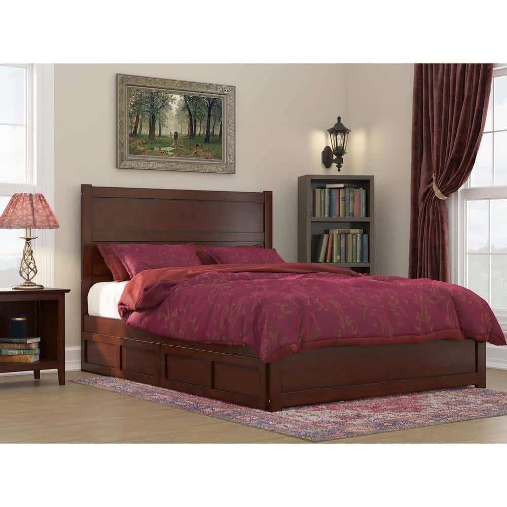- Includes two large drawers for ample underbed storage that slides easily on wheels and can be placed on either side of the bed