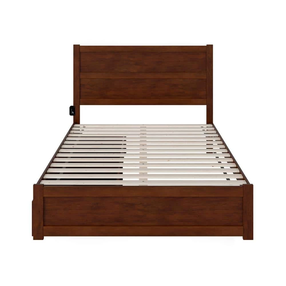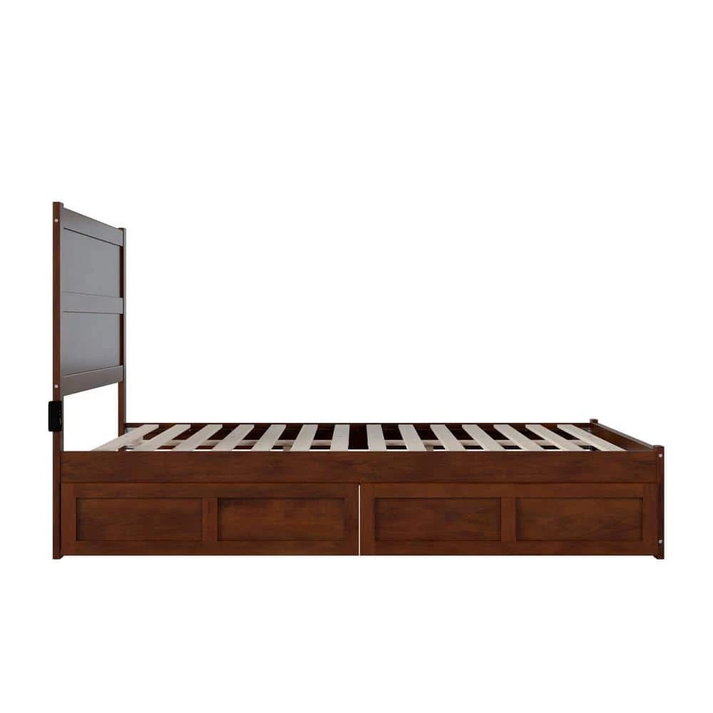Keeping your space nice and clean has never been easier with this NoHo platform bed! These beautifully added bed drawers, fit seamlessly underneath and offer the perfect amount of storage space. Functionality has never looked this good! Crafted from a mix of solid hardwood and veneers for durability, you will rest easy at night knowing you are fully supported. A strong, supportive, slat kit means there is no need for a foundation as the mattress sits perfectly on top of the slats and side rails, offering extra support and the perfect amount of airflow! Attach the included charging station to keep all your favorite devices charged and ready to go after a great night’s sleep!