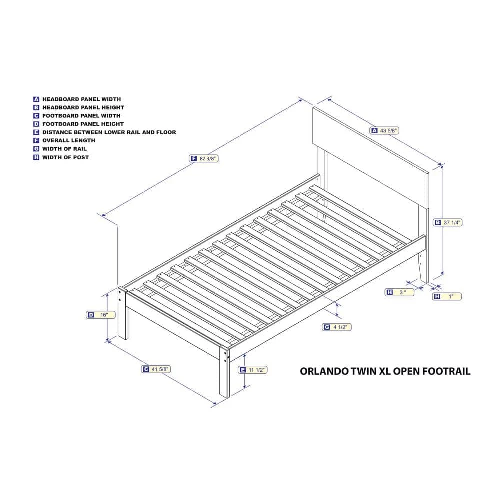 Orlando Walnut Twin XL Platform Bed with Open Foot Board by AFI