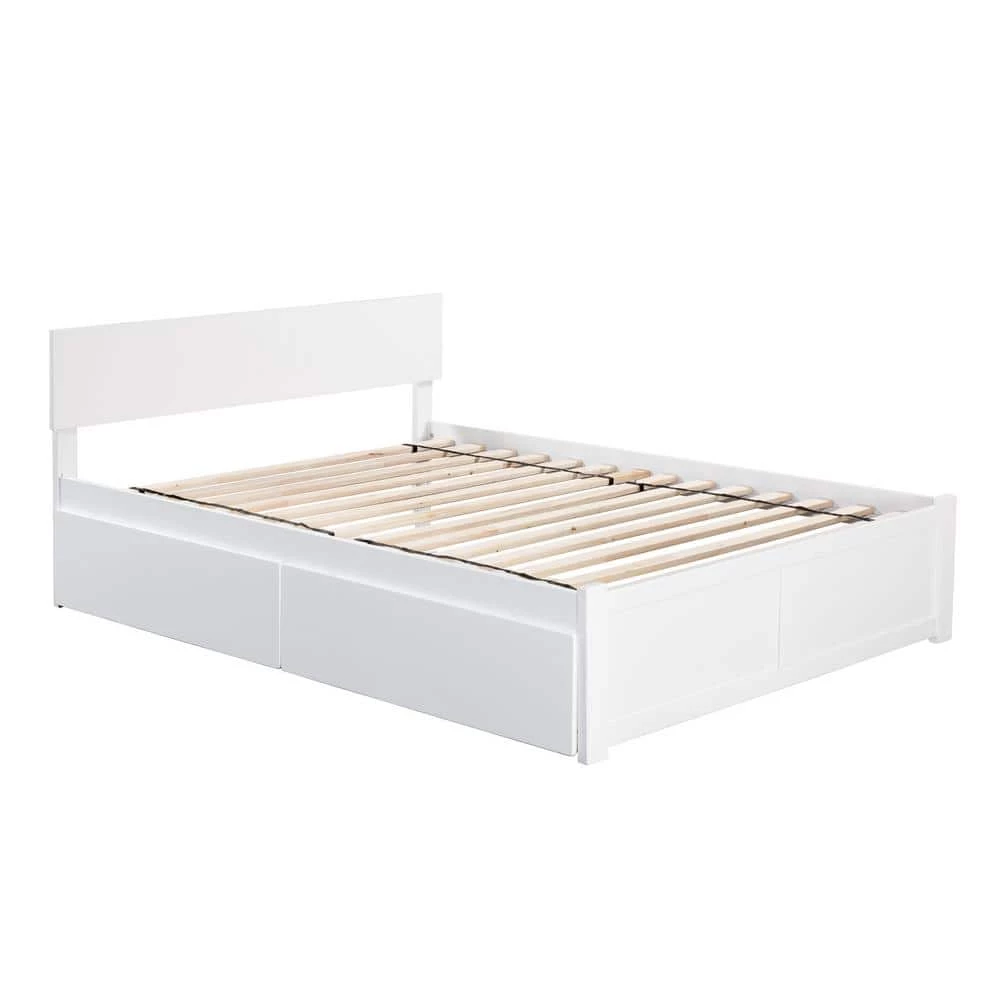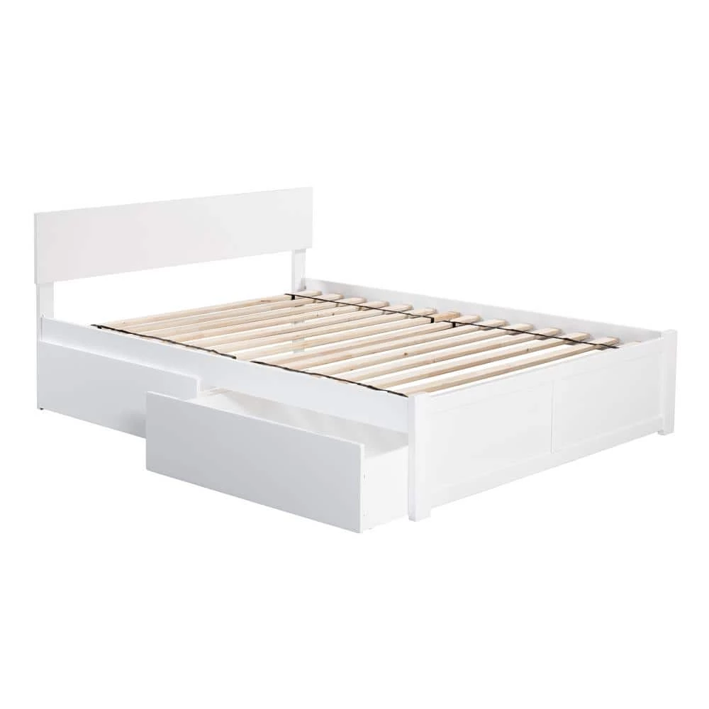 - Includes two large drawers for ample underbed storage that slides easily on wheels and can be placed on either side of the bed