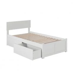 - Includes two large drawers for ample underbed storage that slides easily on wheels and can be placed on either side of the bed