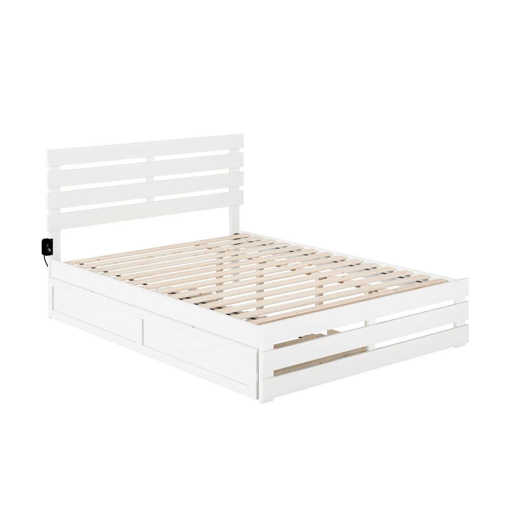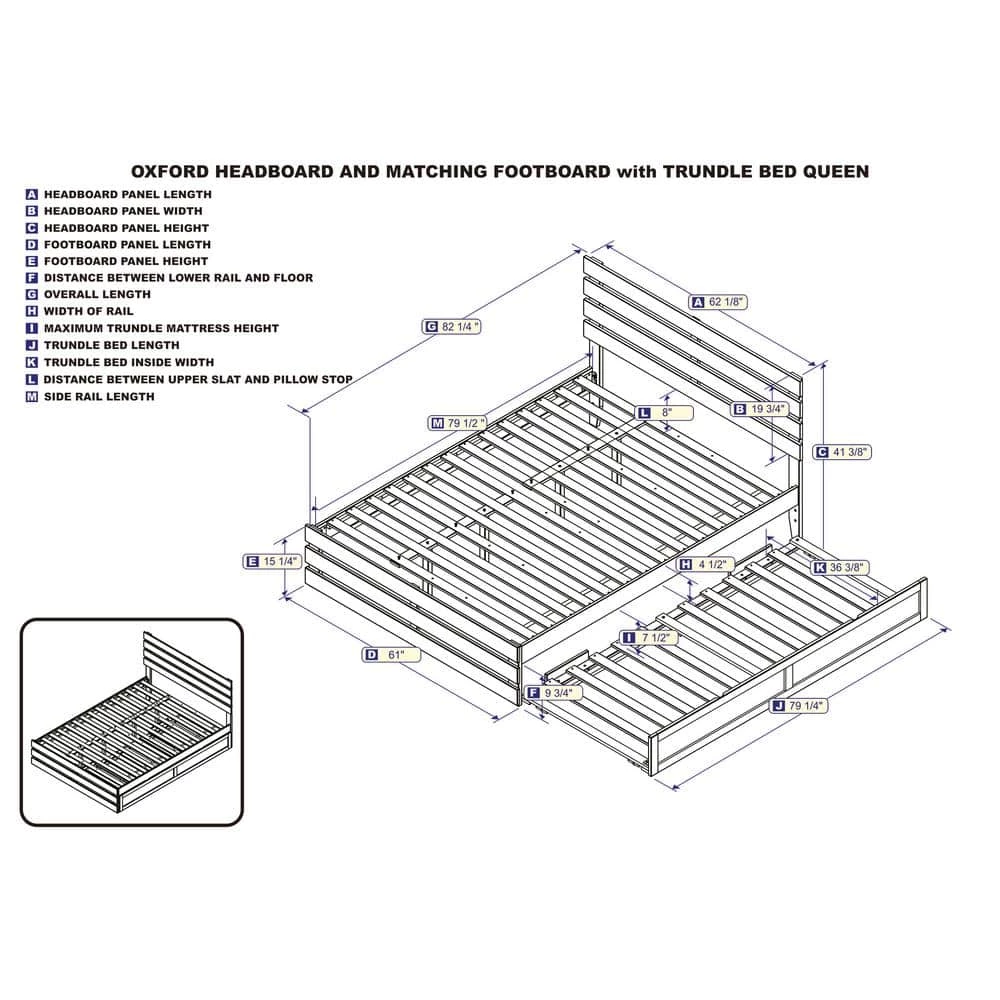 Modern loft or modern farmhouse the Oxford bed with matching footboard puts a twist on contemporary design. Crafted from a mix of solid hardwood and veneers for durability, this bed ships complete with a strong, supportive slat kit and does not require a foundation. The mattress sits on top of the slats and rests on the side rails, allowing for good airflow and providing great support. This design includes a convenient trundle bed. Attach the included surface mount turbo charger and keep all your electronics charged and ready to go.