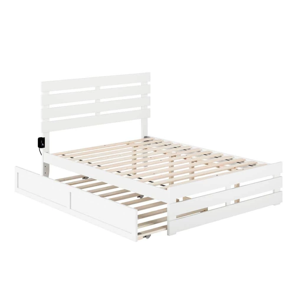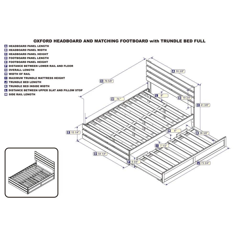 Modern loft or modern farmhouse the Oxford bed with matching footboard puts a twist on contemporary design. Crafted from a mix of solid hardwood and veneers for durability, this bed ships complete with a strong, supportive slat kit and does not require a foundation. The mattress sits on top of the slats and rests on the side rails, allowing for good airflow and providing great support. This design includes a convenient trundle bed! Attach the included surface mount turbo charger and keep all your electronics charged and ready to go!