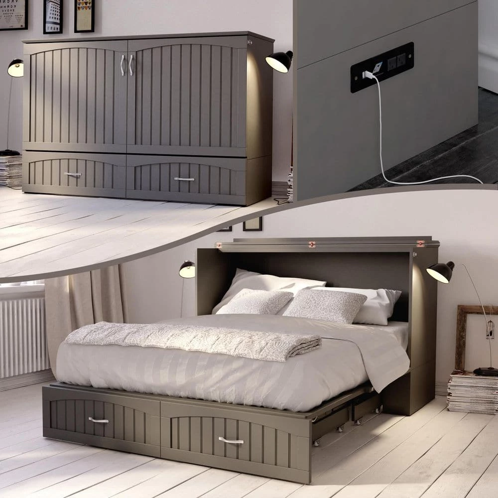 For big personalities with little room to spare: these queen-sized beds are tucked inside sleek, compact chests, so you can entertain with ease. The Southampton Murphy Bed Chest is perfect for guest rooms, vacation homes, or anyone that loves to host, A folding memory foam mattress is hidden behind the cabinet’s sleek, cottage-style tongue and groove paneling. Just unlatch, unfold and your guests have it made.