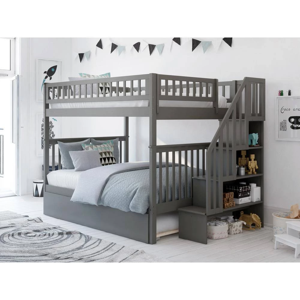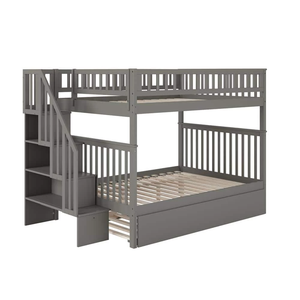 Woodland Staircase Bunk Bed Grey Full over Full with Full Urban Trundle Bed by AFI