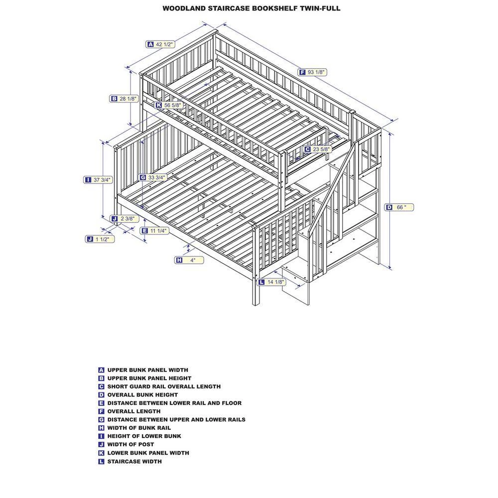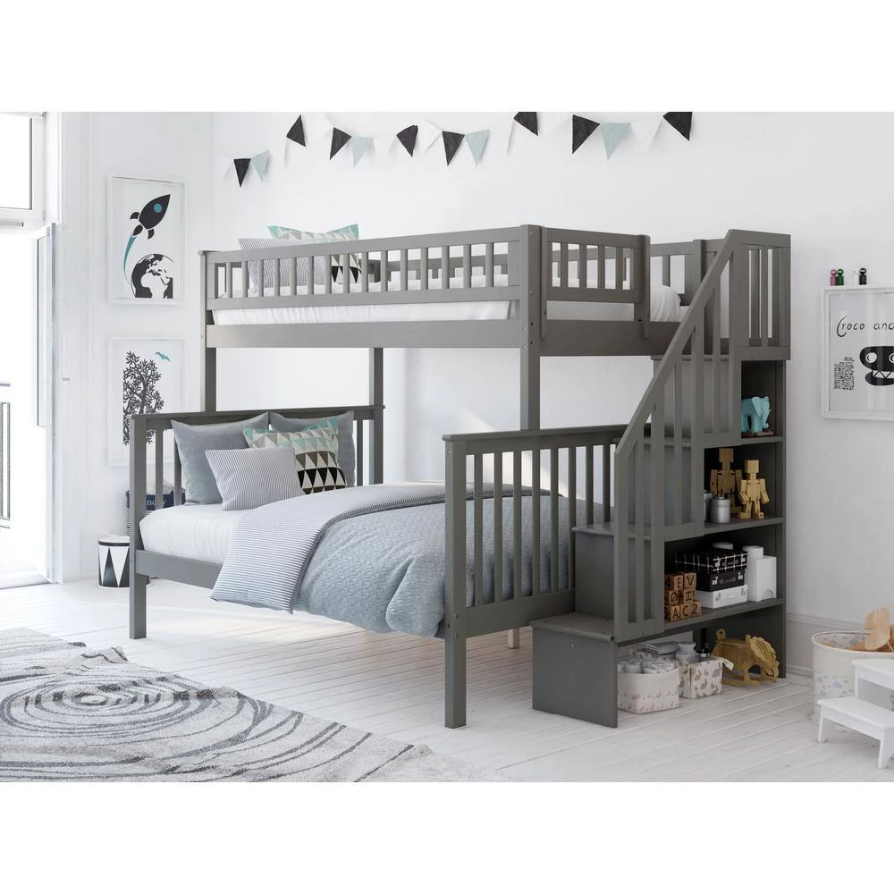 Woodland Staircase Bunk Bed Twin over Full in Grey by AFI