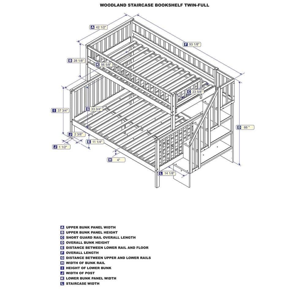 Woodland Staircase Bunk Bed Twin over Full in White by AFI