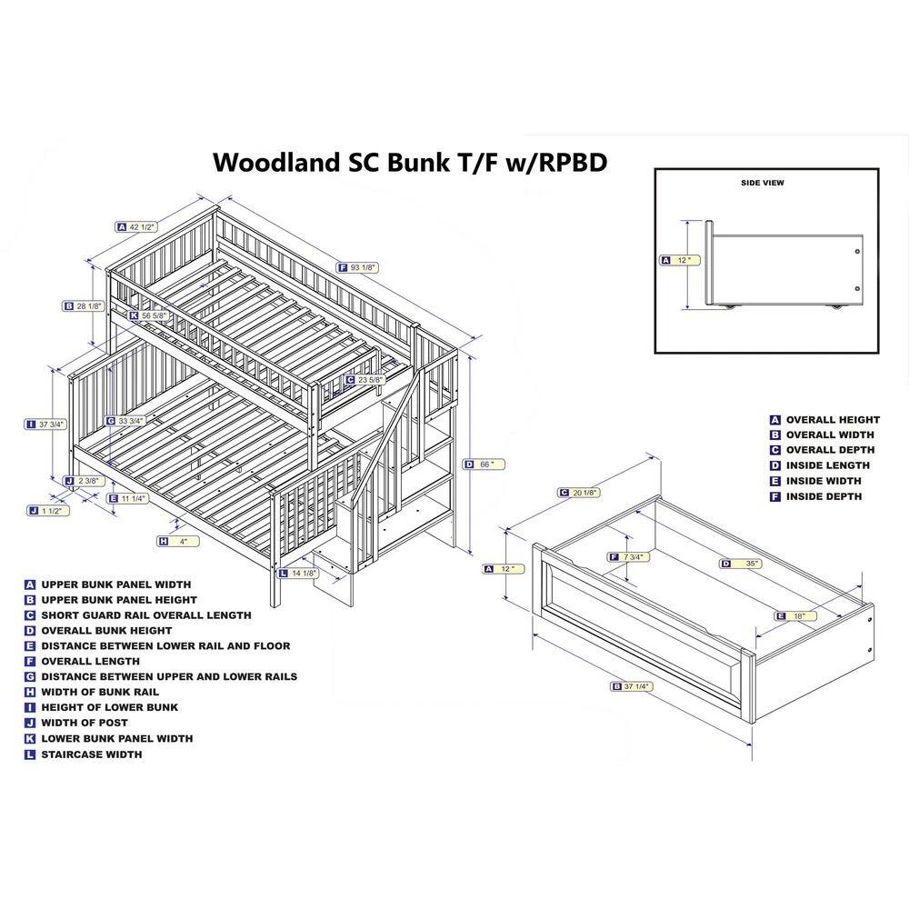 Woodland Staircase Bunk Bed Twin over Full with 2 Raised Panel Bed Drawers in White by AFI