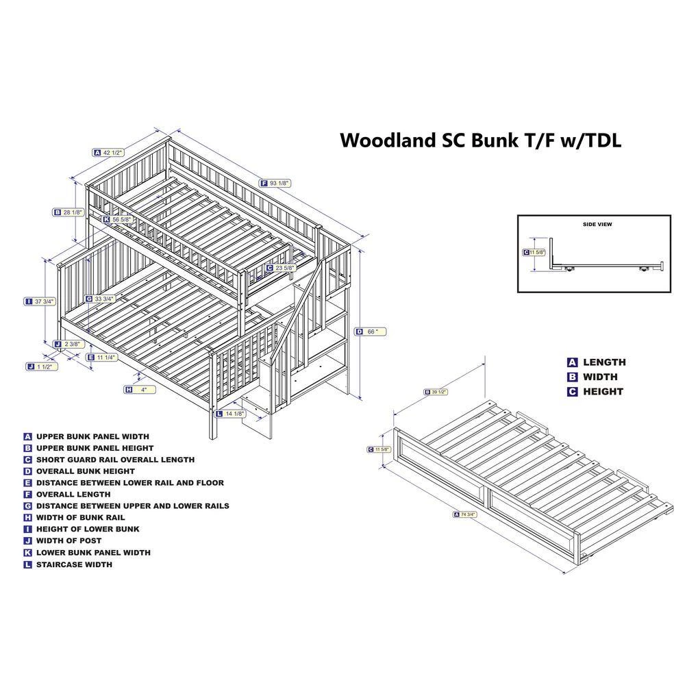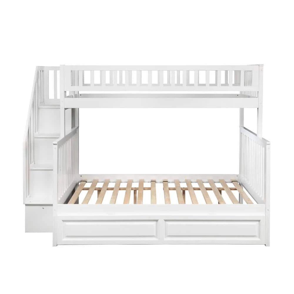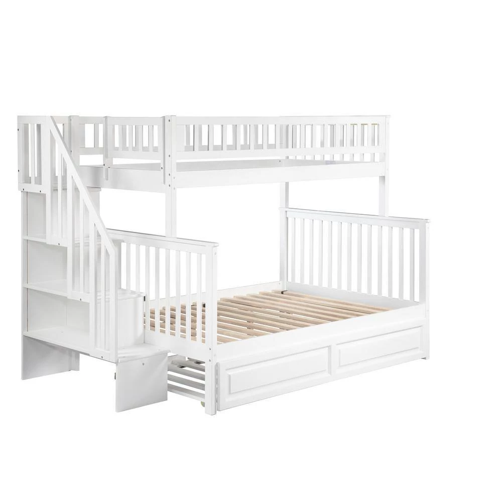 Woodland Staircase Bunk Bed Twin over Full with Twin Size Raised Panel Trundle Bed in White by AFI