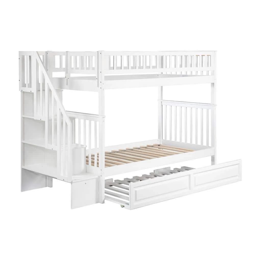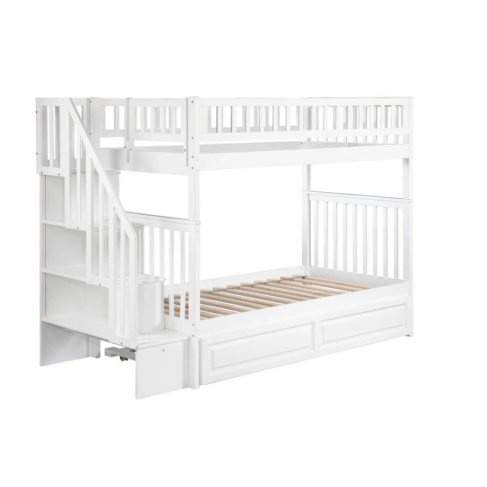 - Staircase bookshelf can be assembled at either end of the bunk bed